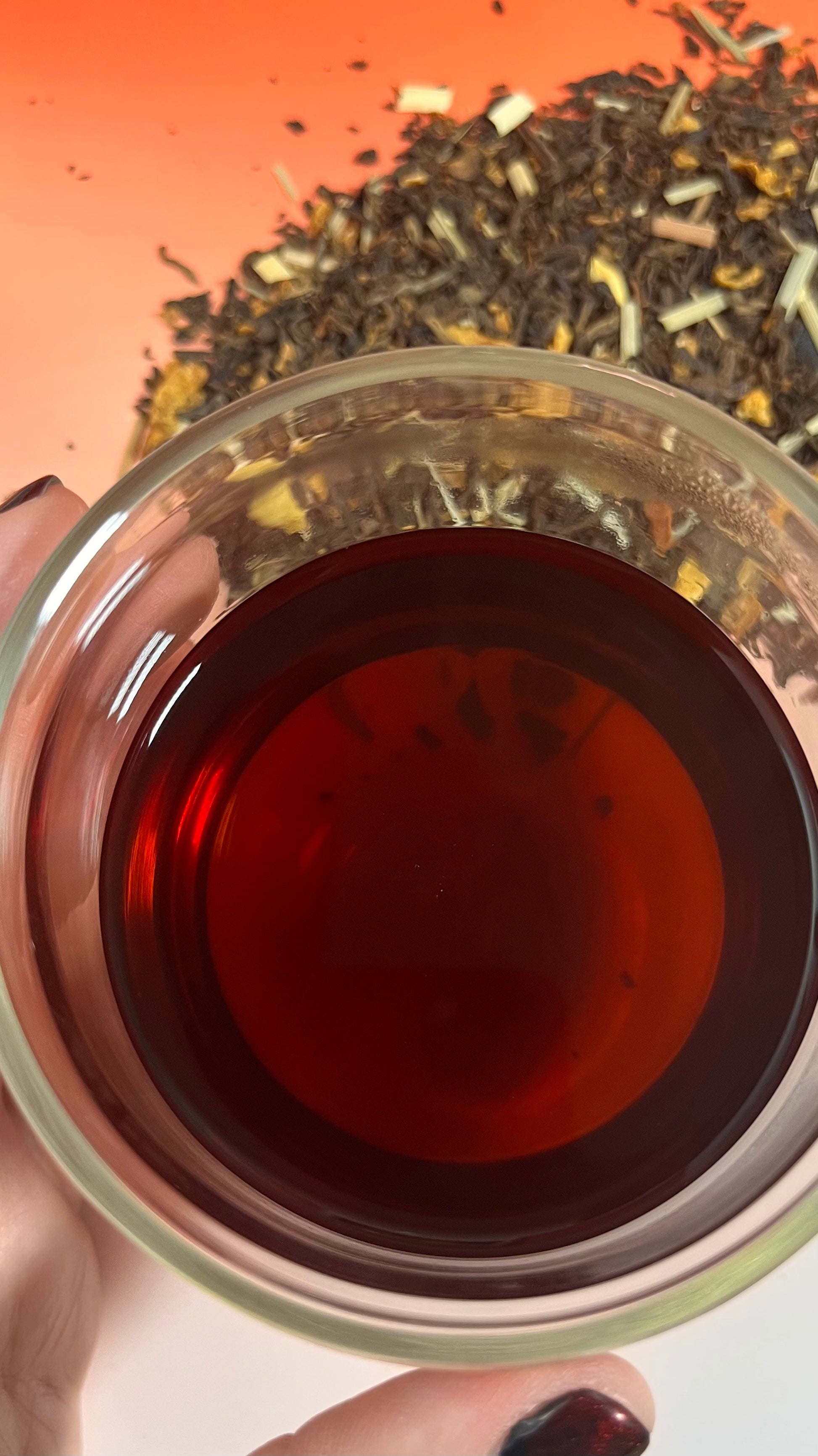 Té rojo con limón, naranja y lemongrass. Ácido y con carácter, es para cuando todo se ha ido de madre: tareas, personas, caos en general. Te ayuda a vaciar, recolocarte y empezar otra vez con lo justo para seguir sin perder la compostura. Como tú, cuando decides no estallar (aunque te apetezca).